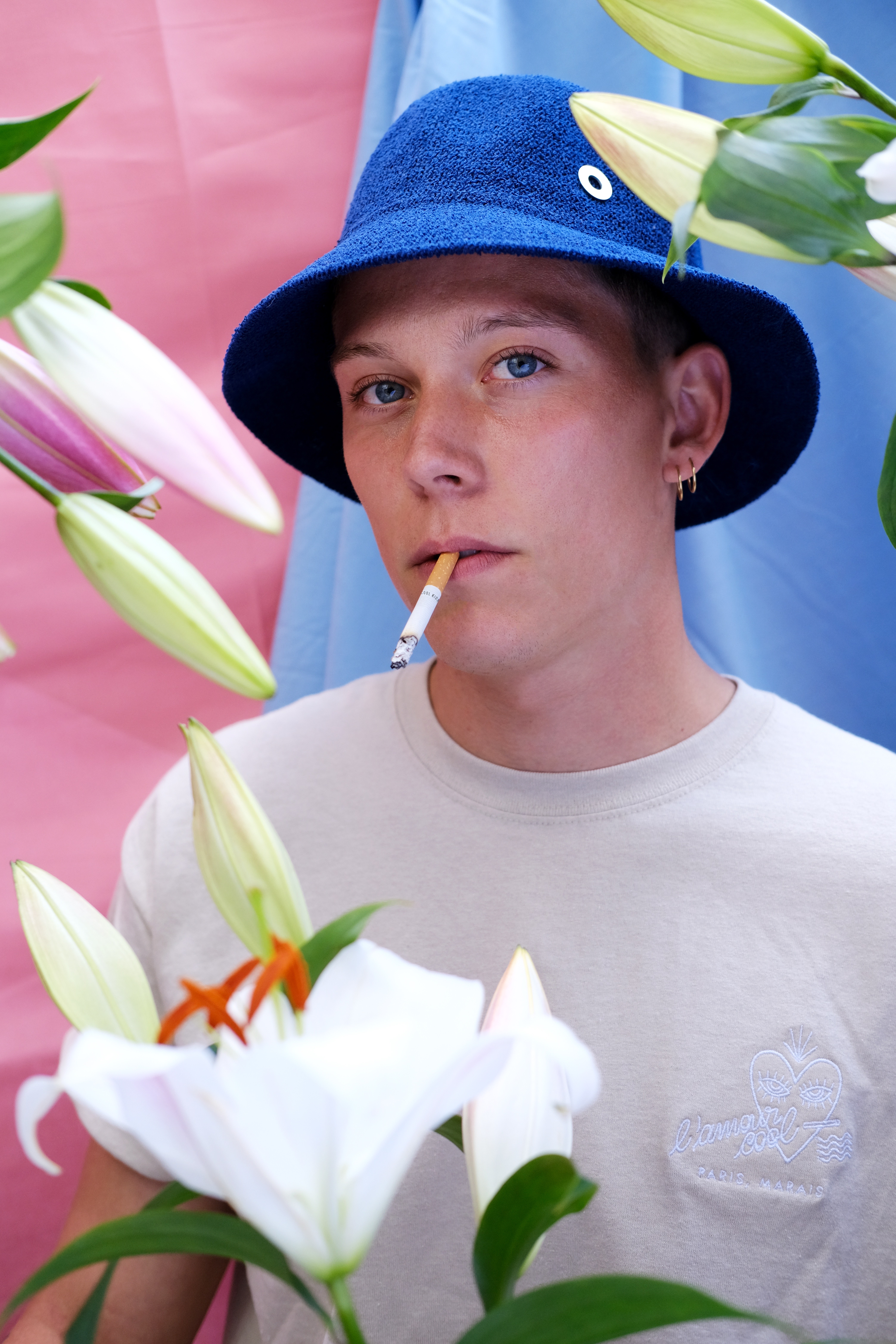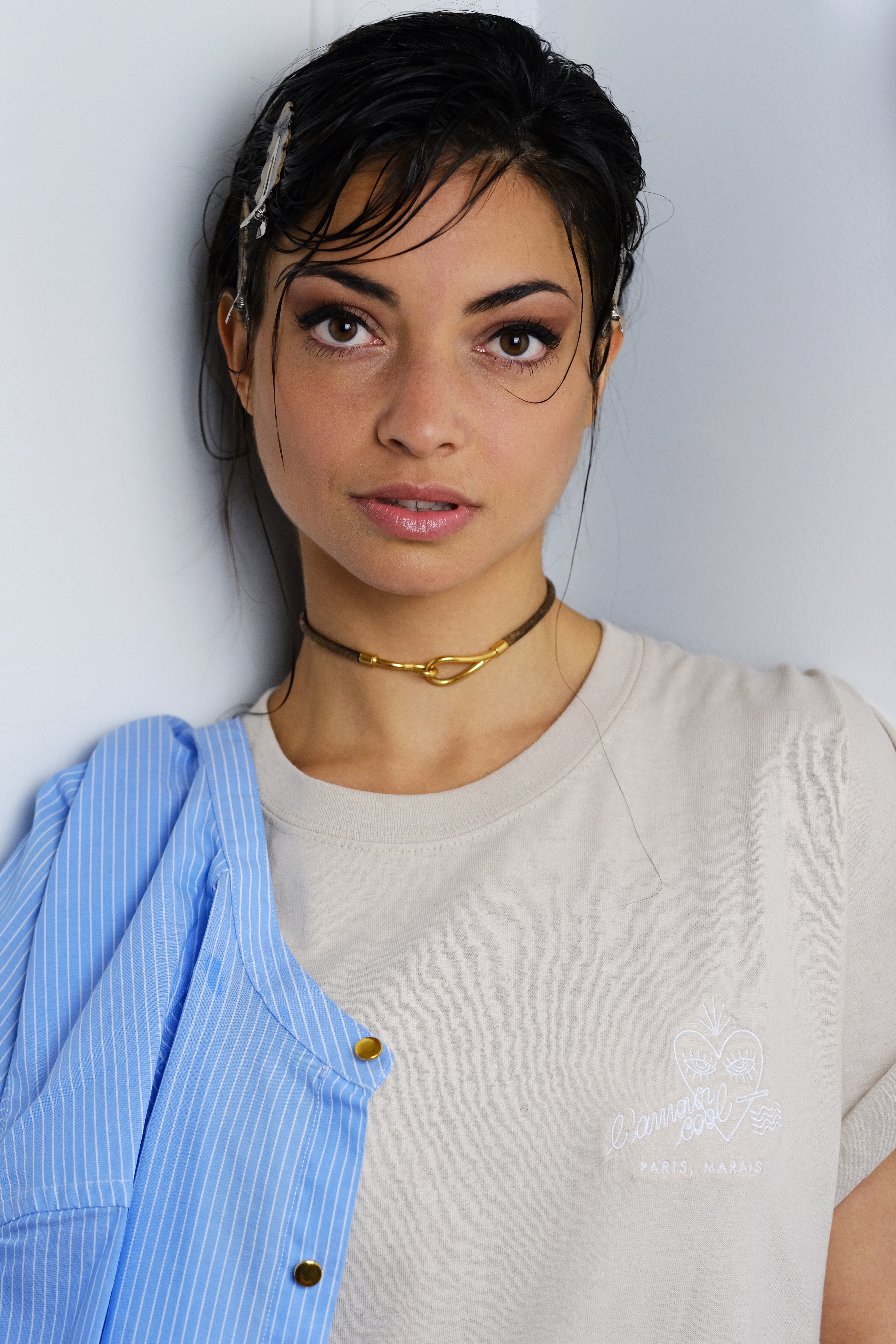 T shirt couleur sable à manches courtes et motif signature de la ligne l’Amour Cool par Cool Kids brodé au coeur.